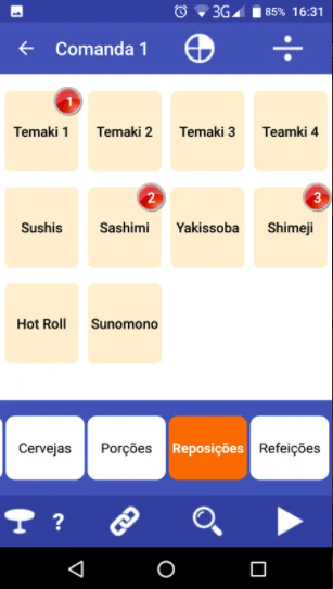 O atendimento pode ser realizado por meio de mesas, comanda individual e balcão.